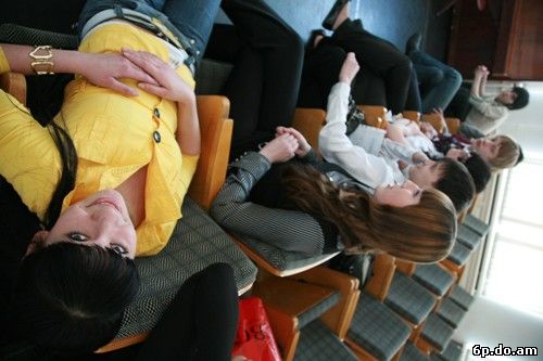почти вся дюжина в сборе, сидят на зрительских местах — что-то обсуждают,
